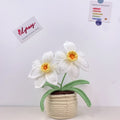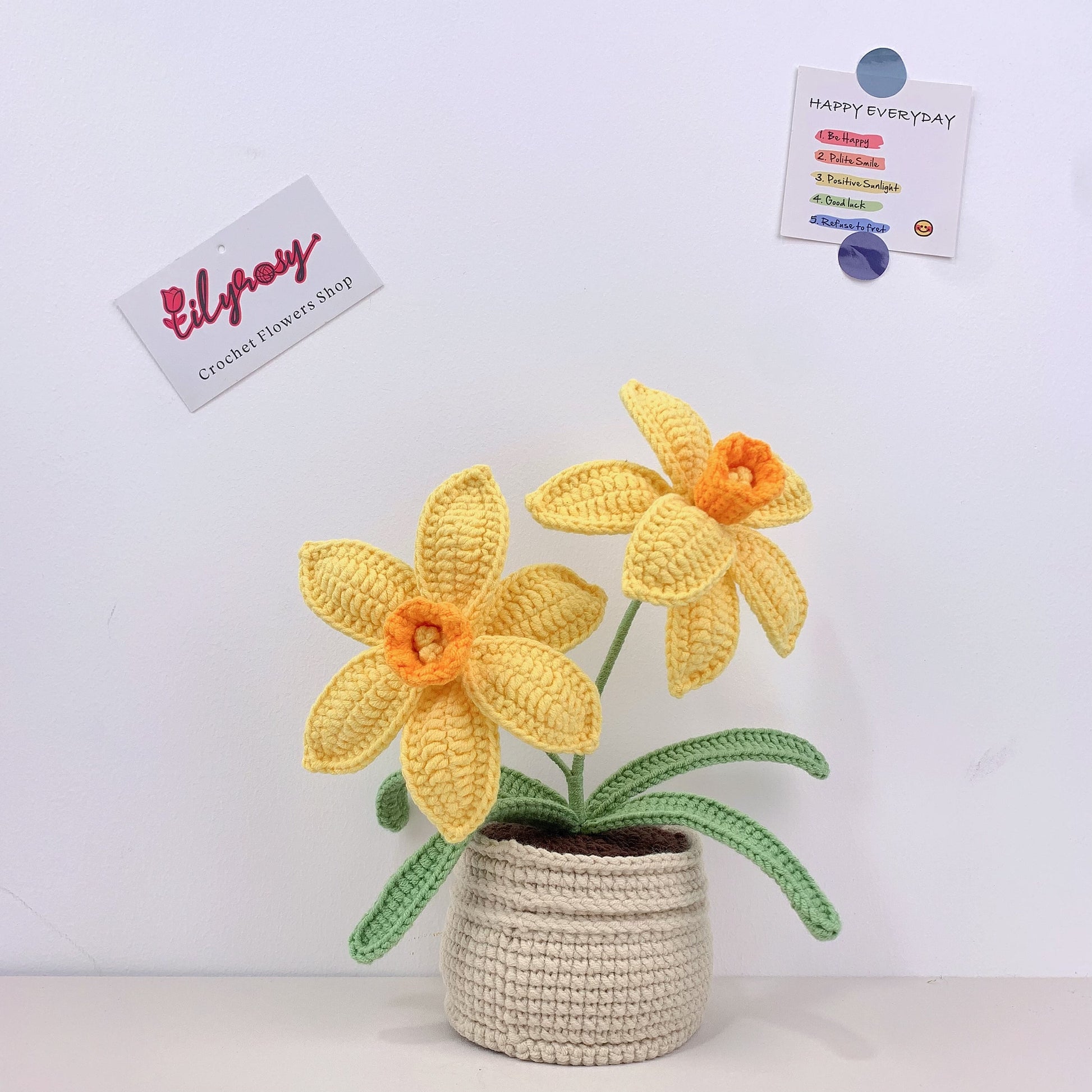 Handmade Crochet narcissus flowers plant Pots, hoilday gifts,home decor