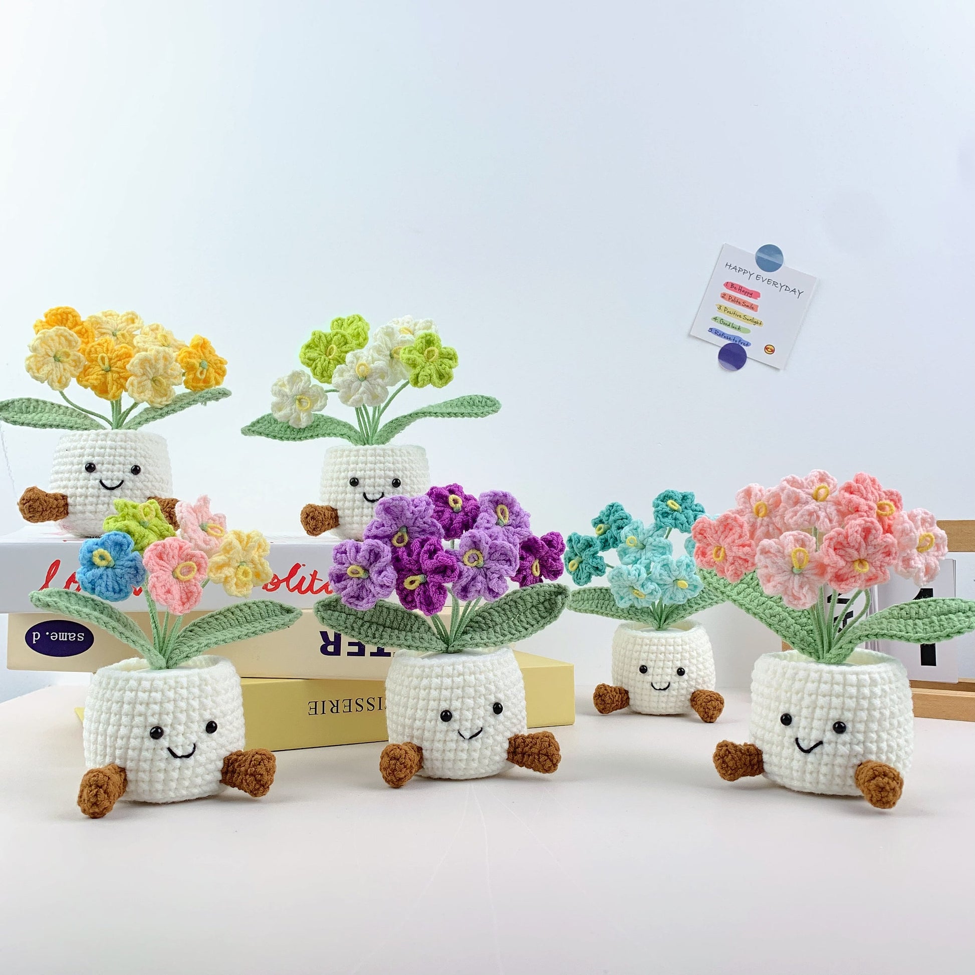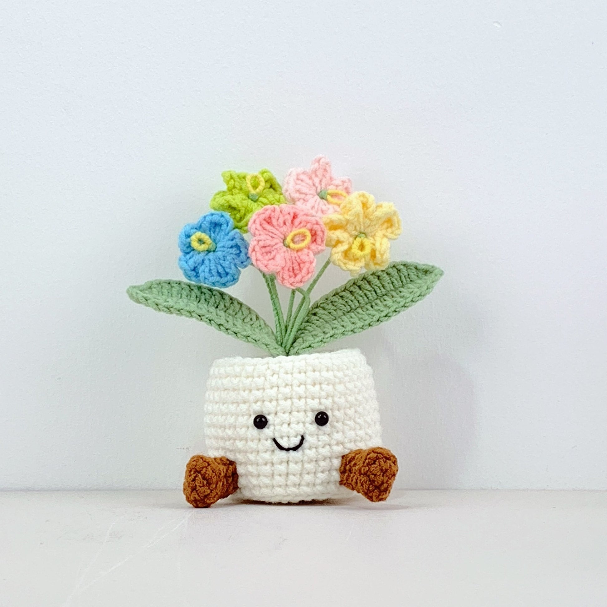 Handmade Crochet forget me not Pots, hoilday gifts,home decor