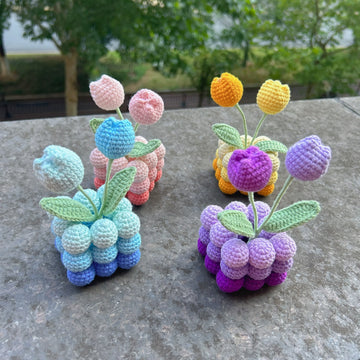 Crochet tulip pots,Car Dashboard Decor, Office decor