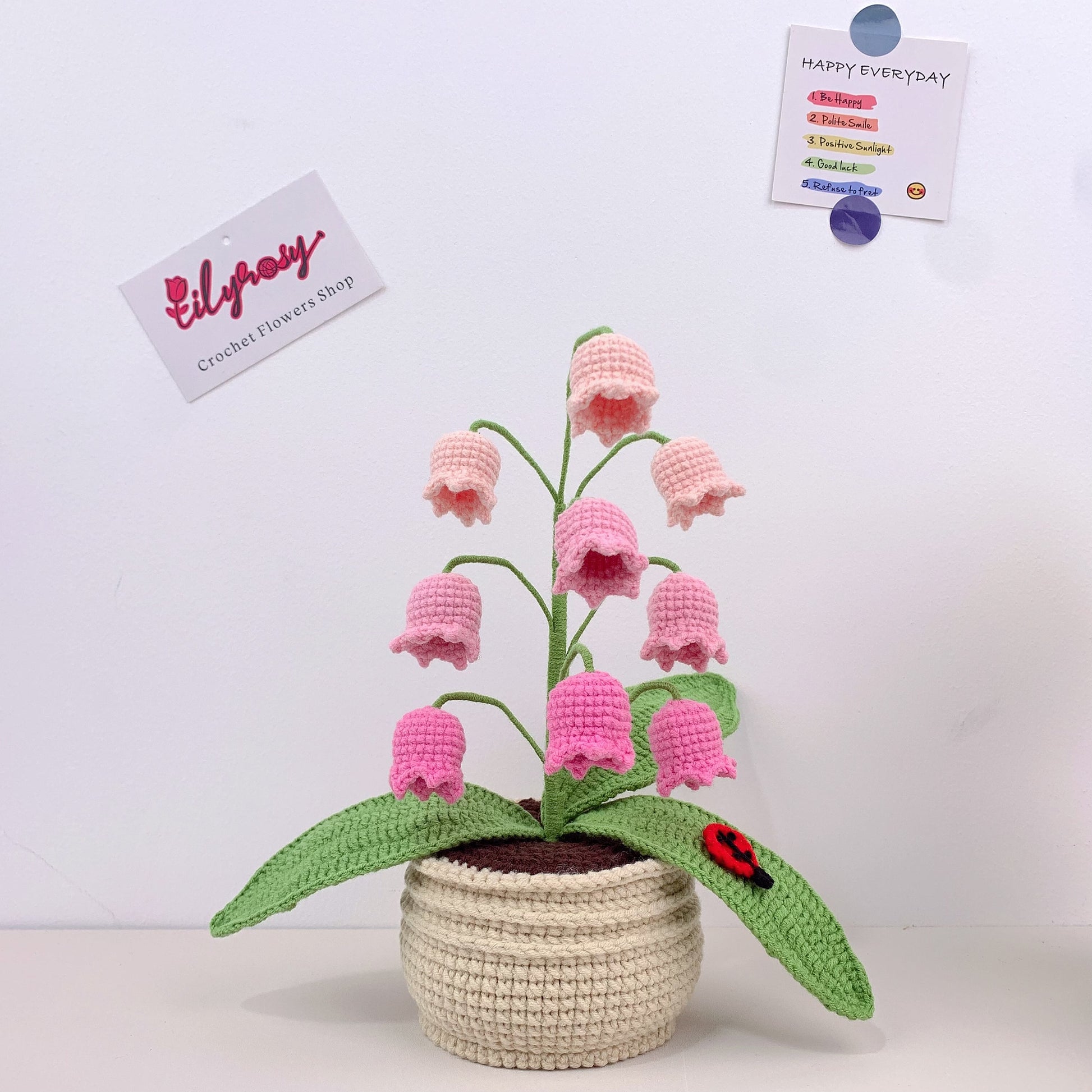 Handmade Crochet Lily of the valley flowers plant Pots, hoilday gifts,home decor