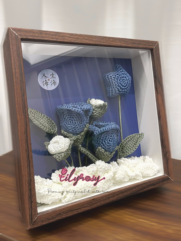 Handmade|Crochet blue roses photo frame ,table Decor, Office decor,home decor
