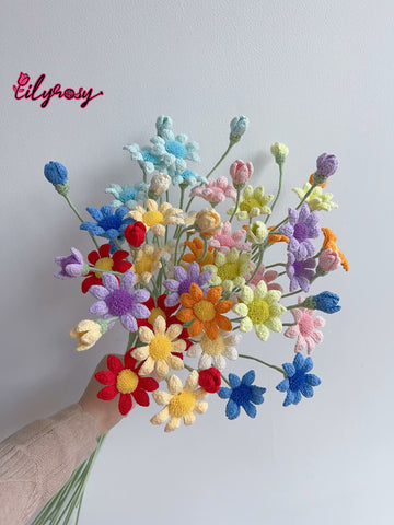 Add a touch of delicate beauty to any space with the Lilyrosy Crochet Flower. This crochet Blue-eyed Daisy and filler flower combination is both charming and versatile, making it perfect for any room. Hand-crafted for a unique touch, these flowers will bring a cheerful and inviting atmosphere to your home.