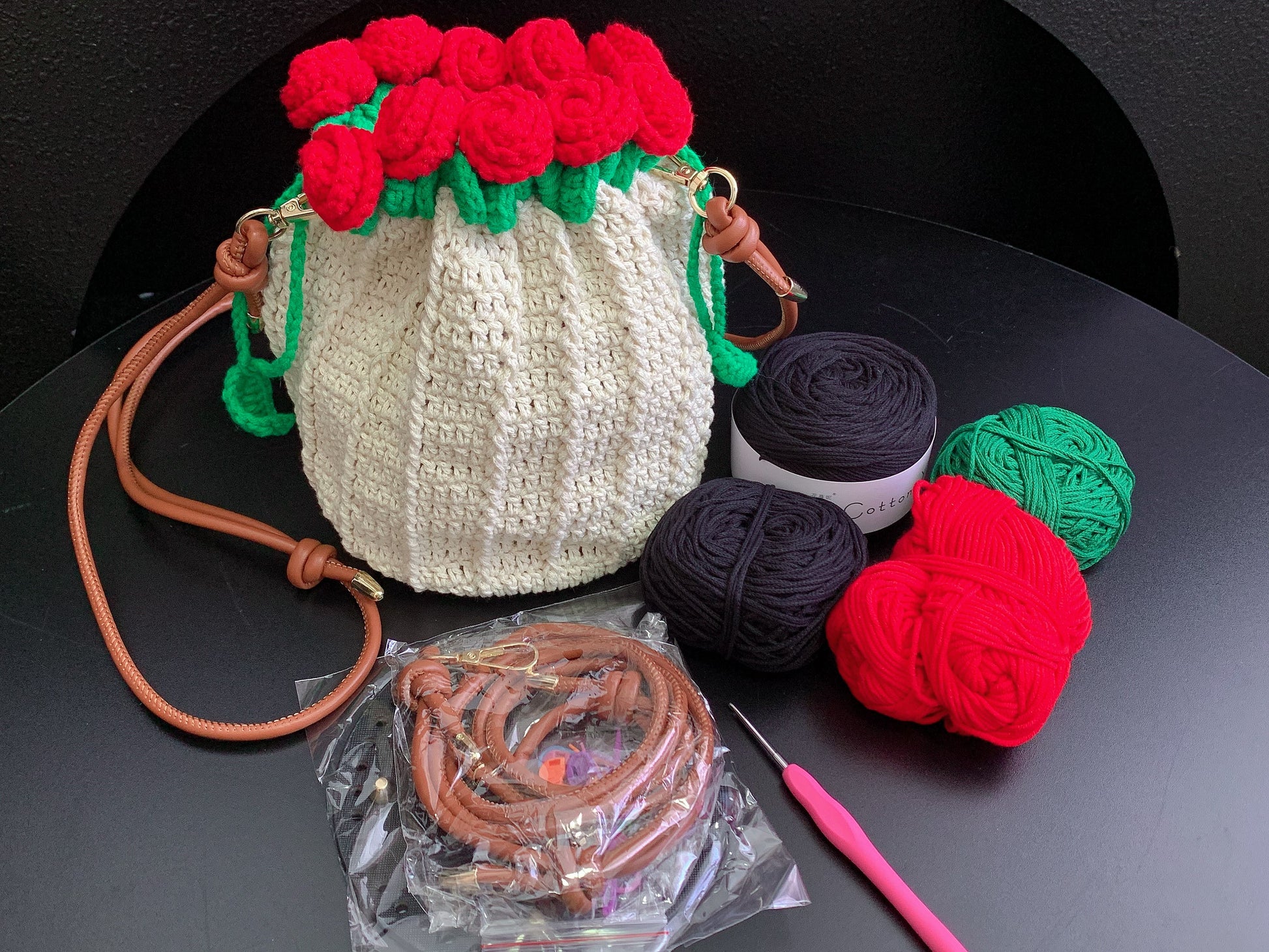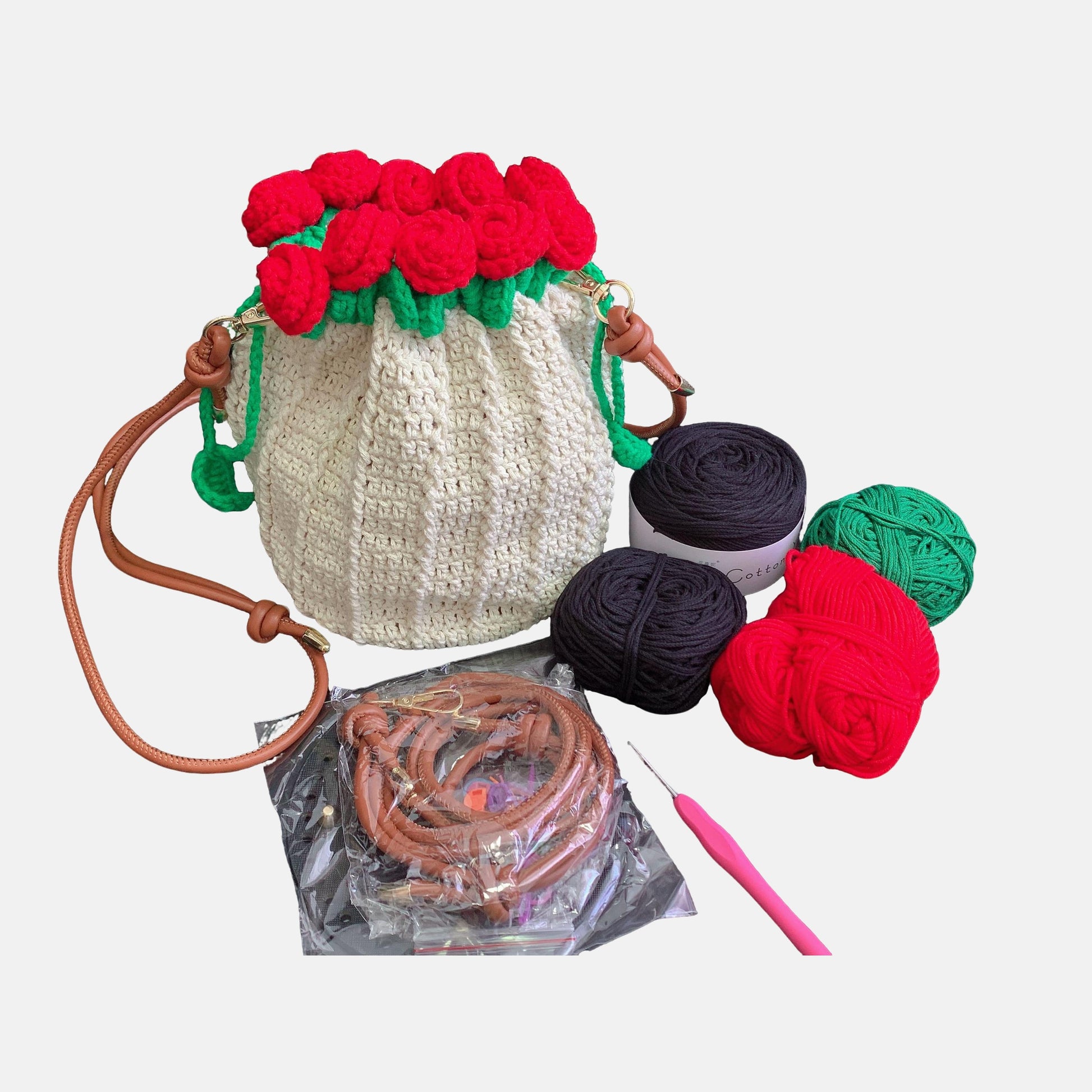 Crochet kits: crochet rose bag bouquet, English pattern with tools, all-in-One Set!