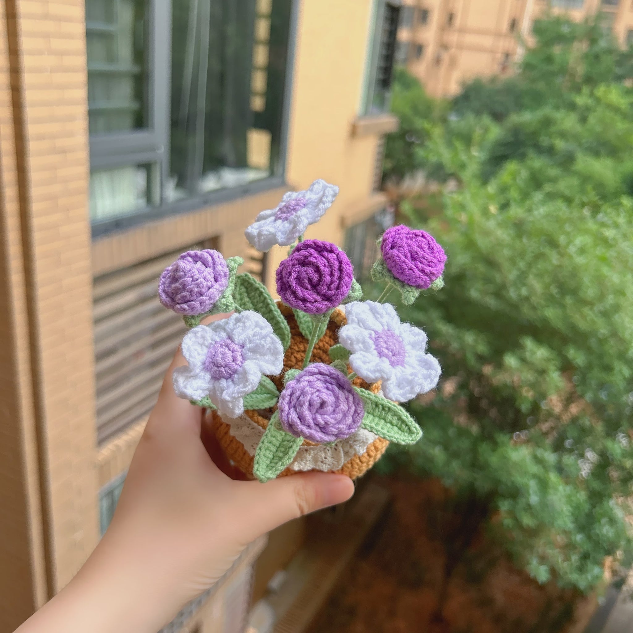 Crochet roses and daisy pots,Car Dashboard Decor, Office decor