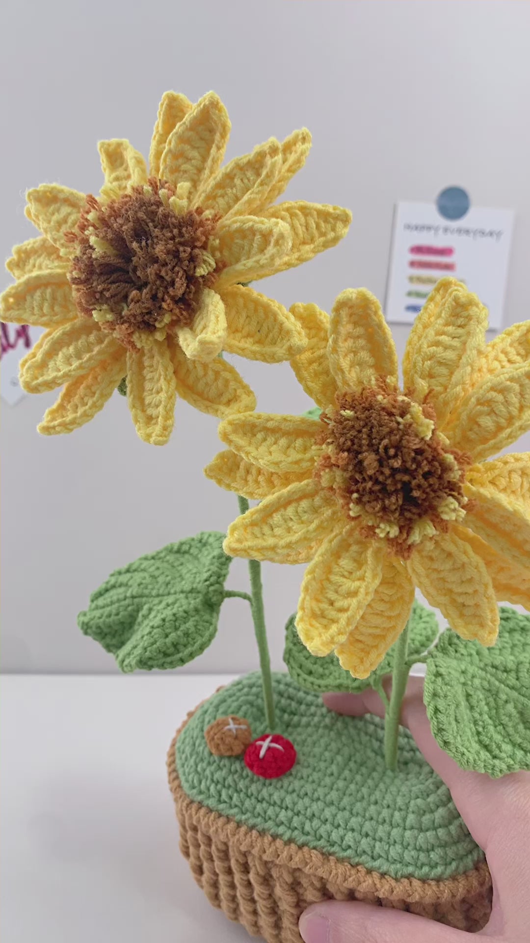 Handmade Crochet sunflower flowers plant Pots, hoilday gifts,home decor