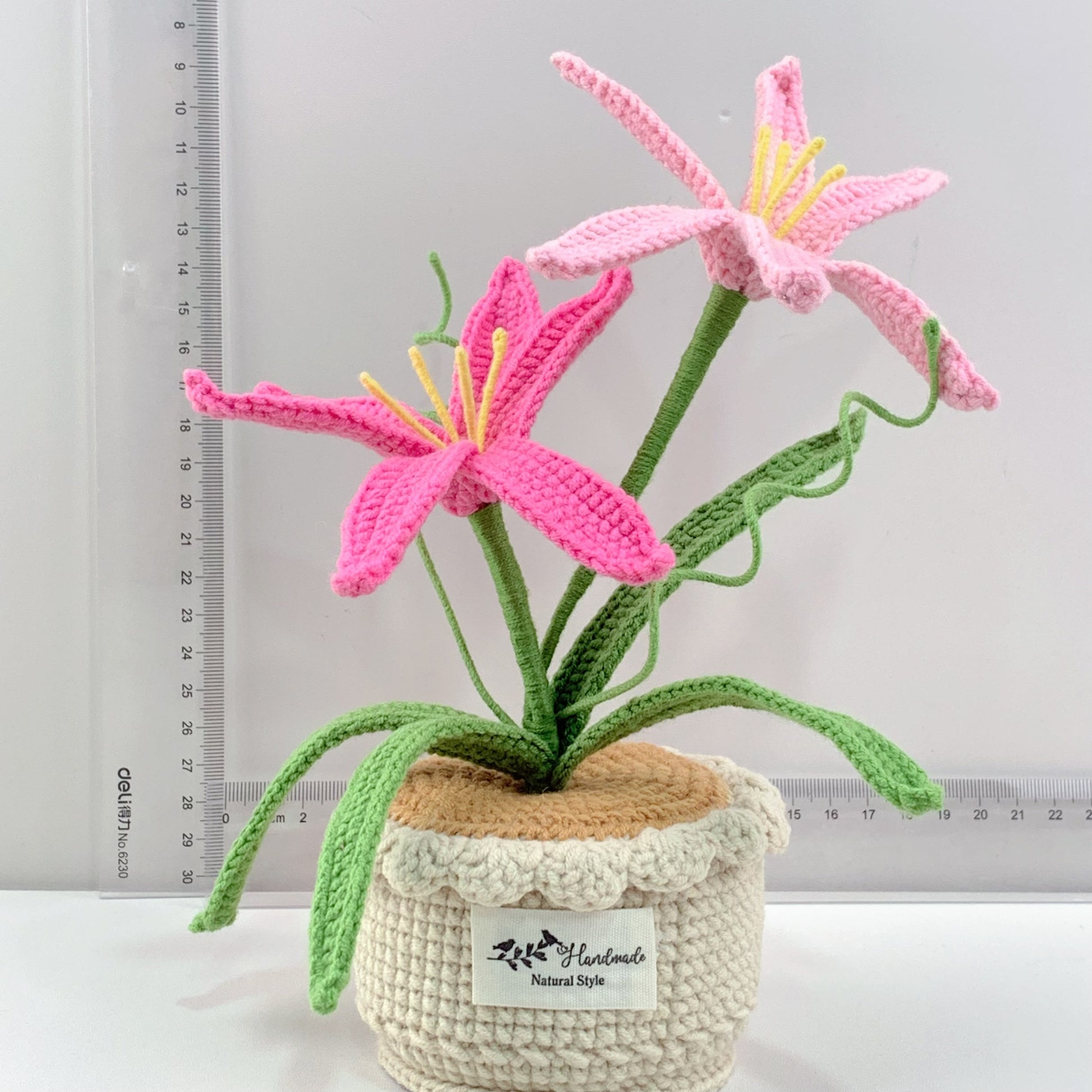 Handmade Crochet Rain Lily flowers plant Pots, hoilday gifts,home decor