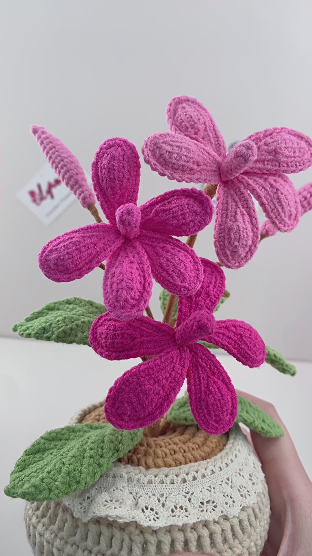 Handmade Crochet frangipani flowers plant Pots, hoilday gifts,home decor
