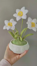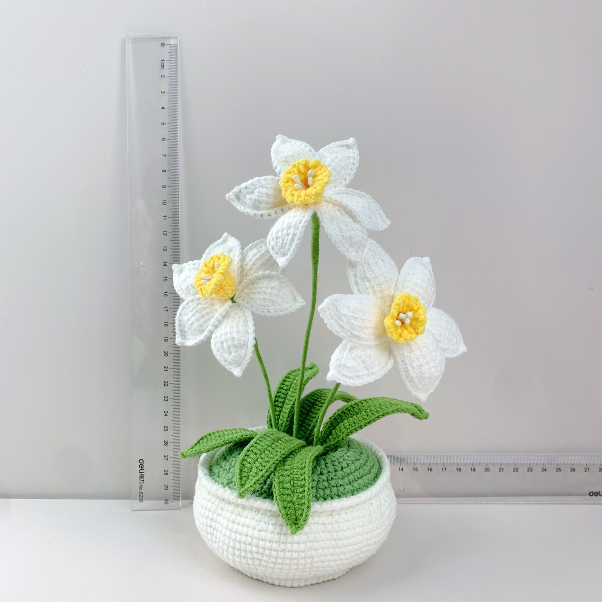 Handmade Crochet narcissus flowers plant Pots, hoilday gifts,home decor